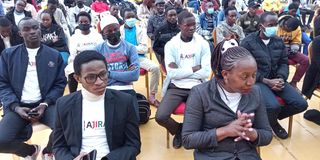 Students at Dedan Kimathi University of Technology in Nyeri during the official launch of Ajira Digital Club at the institution on June 24, 2022.