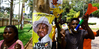 Supporters of Uganda's President and leader of the ruling National Resistance Movement party, Yoweri Museveni, celebrate before the announcement of the final presidential results following the general election in Kampala, Uganda, January 17, 2026.