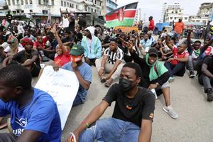 Supporters of former Prime Minister Raila Odinga mourn him outside Parliament Building on October 16, 2025.