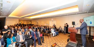 President William Ruto addresses the US-Kenya Business and Investment Roundtable meeting, bringing together CEOs of leading American multinationals on the sidelines of Unga 80 in New York, in USA.