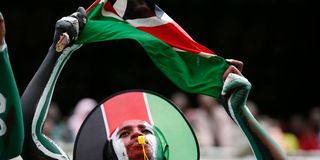 A Kenyan wearing a decoration of the national flag on his face at the Safaricom Stadium in Kasarani on December 12, 2013 during the 50th Jamuhuri Day celebrations.