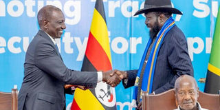 H.E President Dr William Ruto when he was elected EAC Chairman in November 2024, succeeding H.E President Salva Kiir. Partially hidden in the foreground is H.E President Yoweri Museveni of Uganda.