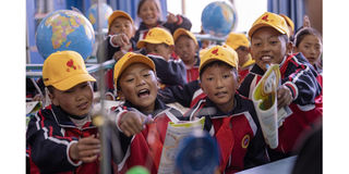 Pupils attend a science class at a primary school in Zhaxizom Township in Tingri County, Xigaze City, southwest China's Tibet Autonomous Region, on June 5, 2023. The primary school of Zhaxizom Township is the closest school to Mount Qomolangma, with a distance of just over 40km.
