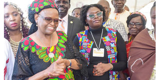 Chief Justice Martha Koome (left) and FIDA Kenya legal counsel Tracy Lichuma at the FIDA-Kenya tent during an Alternative Justice Conference.
