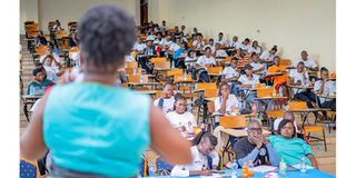 A FIDA-Kenya official sensitising University of Nairobi students on sexual and gender-based violence.
