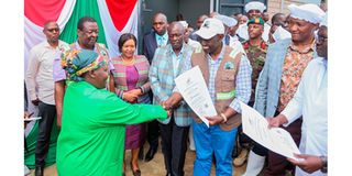 President Dr William Ruto (centre), Deputy President Rigathi Gachagua (fourth from right), Prime Cabinet Secretary Hon Musalia Mudavadi (second from left), and other dignitaries, during the commissioning of the cold storage facility in Ol Kalou, Nyandarua County. Looking on is the Nyandarua Governor Moses Kiarie Badilisha (second from right).