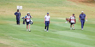 Golfers and caddies during the DP World Tour Magical Kenya Open at Karen Country Club in Nairobi on February 19, 2026.