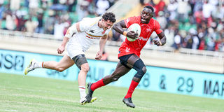 Action inside a packed Nyayo National Stadium on February 14, 2026 during the HSBC Division Two Rugby tournament in Nairobi.