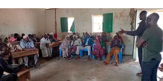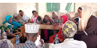 Members of Waldaa pastoralist community take part in a group discussion about the National Land Policy, in Marsabit.
