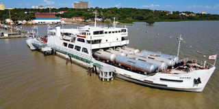 The refurbished MV UHURU 1 transporting fuel wagons to Port Bell and Jinja, in Uganda.