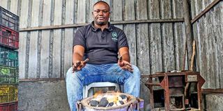 NAWASSCOAL General Manager John Irungu, warms himself with heat emanating from burning feacal sludge- made- briquettes on August 7, 2025.