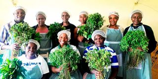 Miriam Nabakwe and her team of workers. She runs kienyeji store; a business that sells traditional vegetables.