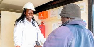 Rachel Winnie Akinyi, a technician at E-Safiri’s Dunga Beach premises in Kisumu, assists a client on November 12, 2025, supporting the city’s shift to electric mobility.