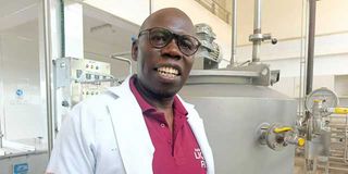 Odigo Jason explains the liquid fish hydrolysate processing steps during an interview with the Nation at the Kenya Industrial Research and Development Institute (KIRDI) Complex in Kibos, Kisumu, on October 24, 2025.