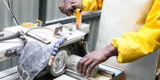 A drinking glass being polished at MokoMaya Home Décor Workshop in Dagoretti, Nairobi, on August 6, 2025.