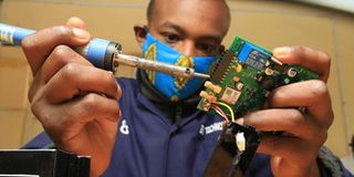A technician assembles a speed governor at Ekas Technologies in Nyeri Town on August 24, 2020. The company plans to start local assembly of mobile phones.