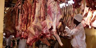 A worker at Kayole Slaughter House prepares beef for sale.