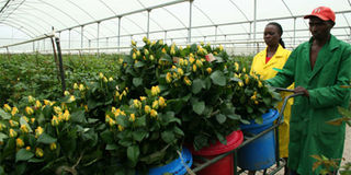 Workers at a flower farm in Oserian, Naivasha. Kenya’s flower industry meets stringent market conditions set by the European market. Photo/FILE