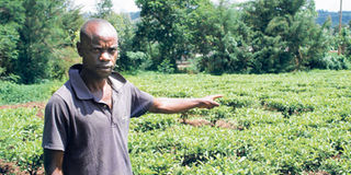 Kibet Tanui in his farm where he uprooted stevia and replanted tea. PETER KAMAU |