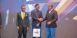 Dr Brian Mwaura receives VOYA Award from Agriculture Cabinet Secretary Mutahi Kagwe on December 6, 2025, at the Hyatt Regency Hotel in Westlands, Nairobi.