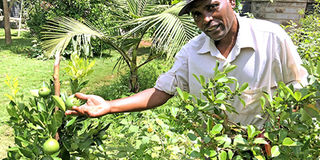 Mark Muchiri, who uses recycled household wastewater to irrigate fruits and the lawn in a homestead in Karen. The water is usually tested for safety before it is given the greenlight to be used. PHOTO | BRIAN OKINDA | NATION MEDIA GROUP