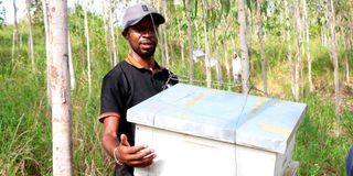 The harvest comes every three months, with a single hive producing 5–10 kilos of honey, selling at Sh1,000 per kilo.