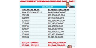 The highest spending was recorded between 2017 and 2022, where the government splashed over Sh951 billion, compared to the Sh490 billion spent during the first term, as the President rushed against time to leave behind a strong legacy. During the 2021/2022 financial year the government spent a total of Sh186.9 billion on roads in the first nine months.