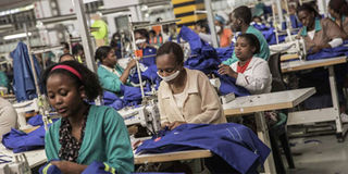 Workers at a textile factory that produces textiles for export to the US under Agoa. The renewal of Agoa is being delayed due to potential changes in the agreement's focus.