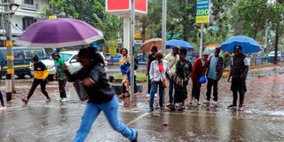 City residents shield themselves from the rain in Nairobi on Sunday, February 22, 2026.