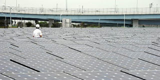 A man walks through a solar power plant. Overall energy investment in Africa today is about one-third lower than it was 10 years ago.