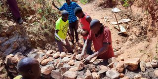 Community members construct a sand dam in Senatwo, West Pokot County. Kenya must move beyond isolated water pans and invest in sustainable infrastructure such as sand dams and solar-powered irrigation cluster.