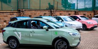 Neta V electric vehicles at Moja EV Kenya Limited offices in Nairobi.