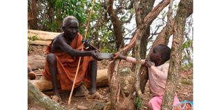 Mzee Kipsetim Kimwetich, 80, and another victim of banditry who fled Kapturo village in Baringo North Sub-County of Baringo County due to frequent attacks from the neighbouring community takes refuge at Kapkomole village on March 15, 2022.