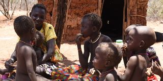 A woman with her children at Chesotim in Tiaty Sub-County. The family has gone without food for two days.