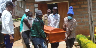 Relatives remove the body of Sharon Chelangat, a rape victim at Tenwek hospital mortuary in Bomet county on March 5, 2024. She succumbed to injuries sustained during the ordeal at Silibwet trading centre in Bomet county.