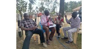 Luhya Council of Elders chairman Patrick Wangamati speaking to journalists at his Khachonge home in Kabuchai constituency.