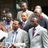 Devolution conference delegates watch a football match at the Eldoret Sports Club streamed live from the Kipchoge Keino Stadium on August 15, 2023.