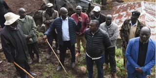 Members of the public at a home in Kipkenda village, Keiyo North of Elgeyo Marakwet County, where a woman and her grandson died on November 3, 2025, following a mudslide on November 2, 2025.