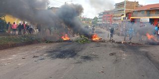 Protesters demanding the release of Manyatta MP Gitonga Mukunji as they protest in Embu town, on July 8, 2025.