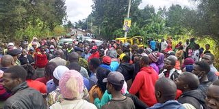 Shocked residents at Njukiri market in Embu county where two suspected gangsters were shot dead during a violent robbery.