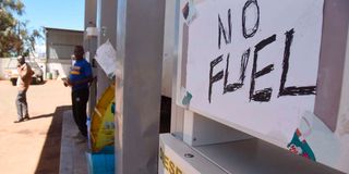 A Petrol Station in Eldoret, Uasin Gishu County, with a 'No fuel' sticker at the pump, after the commodity ran out on April 8, 2026.