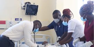 Medics attend to one of the survivors of the brutal attack by their father at Homa Bay's main hospital.