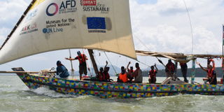 The Flipflopi boat sails across Lake Victoria from Kisumu County to Homa Bay County on March 8, 2021.