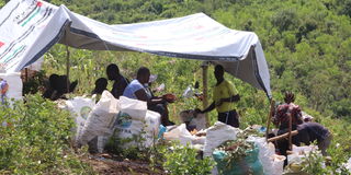 Rocks are packed into 50-kilogram fish feed sacks but due to their weight, they must be divided for transport. Prices range between Sh1,000 and Sh5,000 per sack depending largely on the miner’s negotiating skills.