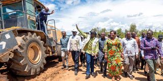 President William Ruto accompanied by Homa Bay Governor Gladys Wanga inspect the Karabok-Adiedo Road, a 7.34km project valued at Sh925 million in Karachuonyo Constituency.