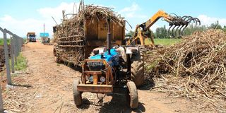 A transporter offloads cane at the Kibos Sugar and Allied Industries in Muhoroni, Kisumu on June 9, 2023.