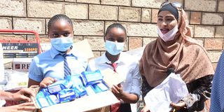 Ms Jaldesa distributes sanitary towels to secondary school girls at her office in Isiolo town on November 22, 2020.