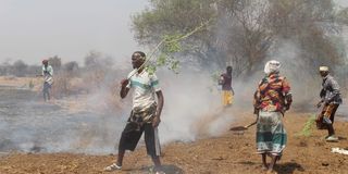 Residents of Korbesa sub location in Charab sub county in Isiolo put out a fire on January 21, 2025.