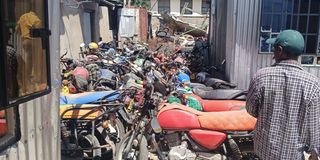 A spot check at Kitengela Police Station on August 4 found about 70 motorcycles chained together and rusting away. Police records show they had been impounded for reasons ranging from traffic offences and accidents to involvement in crime.