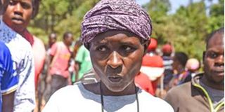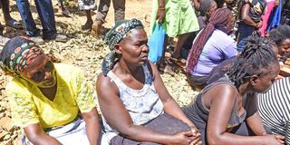 Maxmillah Tsisiki, mother to one of two feared dead miners waits as the retrieval of bodies goes on at Museno mine shaft on February 4, 2025, in Shinyalu, Kakamega county.